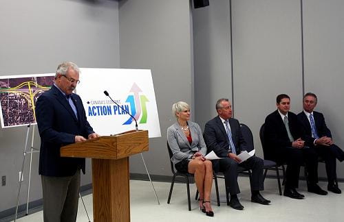 Gerry Ritz, Minister of Agriculture and Agri-Food and Member of Parliament for Battlefords–Lloydminster on behalf of Joe Oliver, Minister of Finance, today announced the Government of Canada’s investment of up to $200 million in a public-private partnership (P3) to support the construction of the Regina Bypass. The minister was joined at the event by Saskatchewan Highways and Infrastructure Minister and Minister responsible for SaskBuilds Don McMorris.