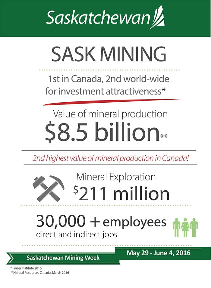 “With almost $30 billion in total potash and uranium capital investment since 2007, the importance of mining to Saskatchewan’s diversified economy is worth taking a look at,” Boyd said. “Mining Week is an opportunity for people to discover that there is much more to this industry in Saskatchewan than meets the eye.”