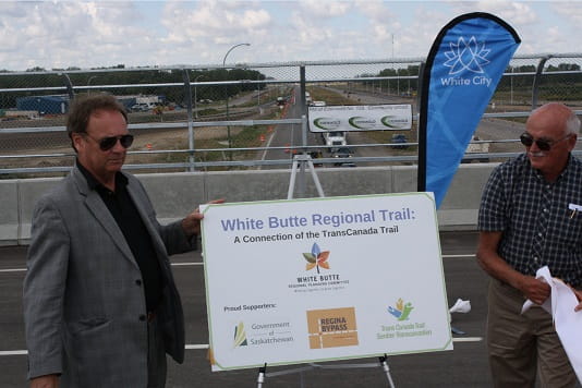 “The new overpass, and the White Butte Trans Canada Trail crossing, will enhance the quality of life for residents in the region by making travel to and from the city safer, while providing a unique crossing of the Trans-Canada Highway by the Trans Canada Trail to be enjoyed for generations to come,” White City Mayor Bruce Evans said.