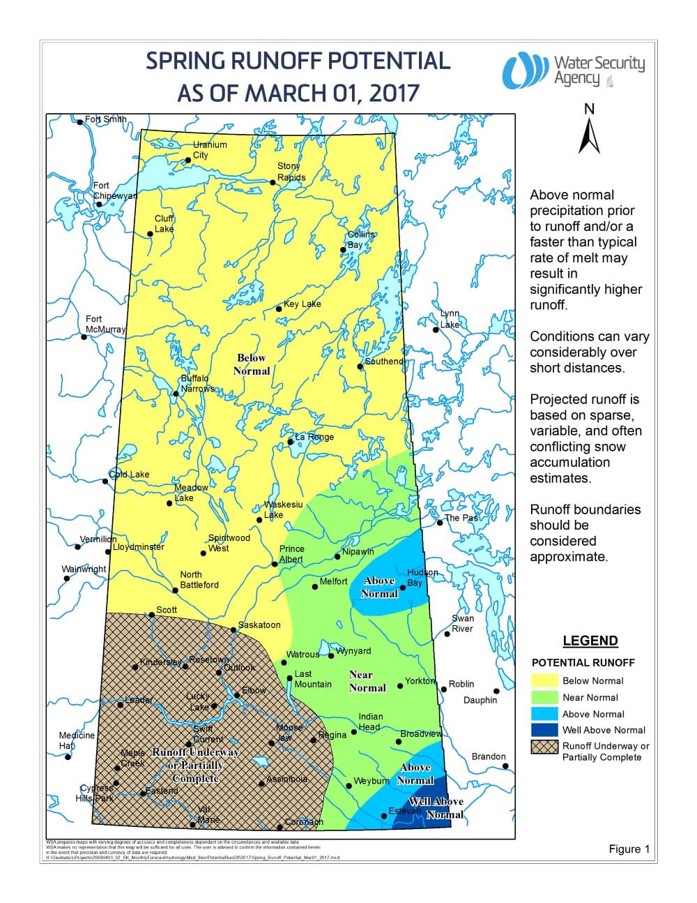 Water Security Agency will continue to monitor the 2017 spring runoff conditions across Saskatchewan, which may include further targeted snow surveys to verify snow accumulations. If warranted, further updates will be issued as the spring runoff progresses.