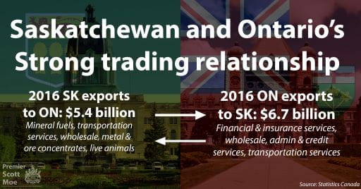“Saskatchewan and Ontario stand united in our fight against the carbon tax,” Moe said. “We also stand united in acknowledging the importance of the trade relationship between our provinces, and I am pleased to join Premier Ford to discuss how we can continue lowering interprovincial trade barriers.”