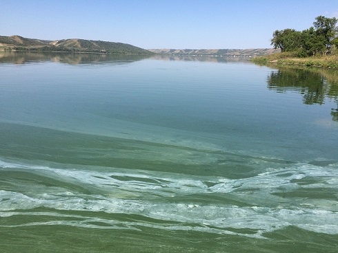 Algae blooms, or heavy concentrations of blue-green algae, commonly occur during calm, hot weather in areas of lakes and reservoirs with shallow, slow moving or still water that has sufficient nutrients.  Pet owners and livestock producers are also advised to keep their animals away from such water.