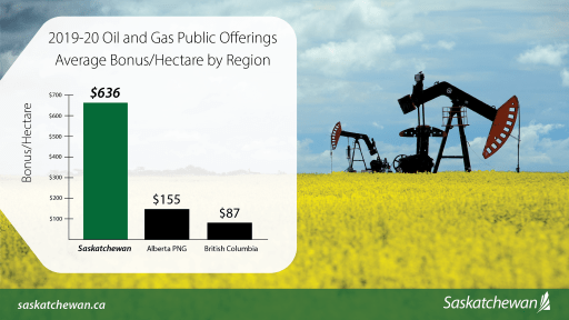 Saskatchewan currently averages $636.66 per hectare for the fiscal year, higher than similar public offerings held to date in Alberta and British Columbia, which average $155.63 per hectare and $87.46 per hectare respectively.