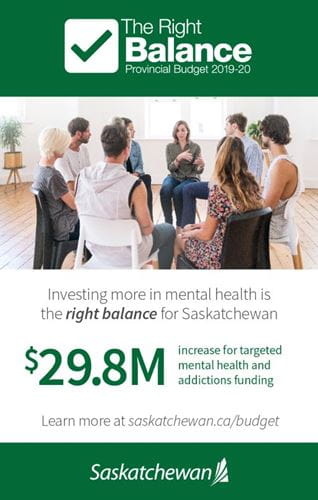The 2019-20 Saskatchewan budget makes the largest investment in mental health and addictions services in Saskatchewan history.