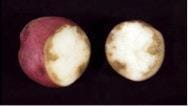 Infected potato tubers develop a reddish-brown discolouration just beneath the skin (Photo 4). Lesions can also develop on tomato fruit, usually as a bronze or coppery-coloured lesion at the shoulder of the fruit (Photo 5). Infected potatoes and tomatoes rot quickly, either on the plant or once in storage.