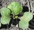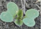 First true leaves are covered with hairs on both the upper and lower leaf surfaces. Hairs on leaves are less dense than on yellow mustard leaves.