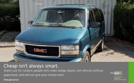 The Financial and Consumer Affairs Authority of Saskatchewan (FCAA) wants consumers to watch out for curbers.  A curber is an individual or dealer who does not have a vehicle dealer license and who is in the business of buying and selling vehicles to make a profit.