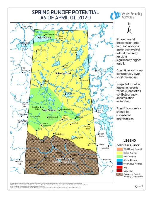 Snowmelt runoff is nearing completion in much of the southern half of Saskatchewan, while the rest of province is expected to experience a below normal to normal spring runoff, according to the updated spring runoff report issued by the Water Security Agency (WSA) today.
