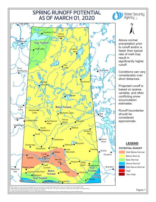 Most of the province is facing a below normal spring runoff for 2020 as low winter snowfall levels are impacting conditions across Saskatchewan.