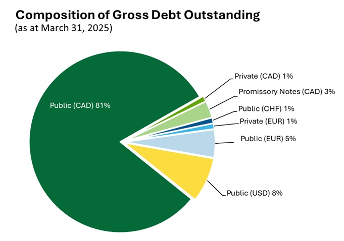 Saskatchewan’s public borrowing program has primarily been concentrated in the Canadian domestic market and is expected to remain so going forward. In recent years, however, the Province has expanded its issuance in international markets, with an objective of maintaining approximately 25% of total outstanding debt from international issuance.