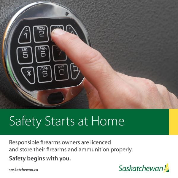 The Saskatchewan Firearms Office has launched a public awareness campaign to promote firearms safety in the province. The campaign promotes safe practices when using and storing firearms, as well as getting and maintaining your Possession and Acquisition Licence (PAL/RPAL), to help prevent accidents and mitigate loss or theft. The tagline for this year's campaign is: Secure Firearms. Safe Communities.