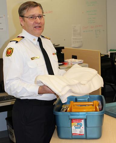 A basic vehicle kit should contain: food that won’t spoil such as; energy bars; water in plastic bottles; blankets; extra clothes; winter boots; a candle in a deep can and matches; a first aid kit; a seat-belt cutter; a shovel; a wind-up flashlight; a whistle; maps; sand, salt or non-clumping cat litter; antifreeze/windshield washer fluid; a tow rope; jumper cables; and reflectors, a warning light or road flares.