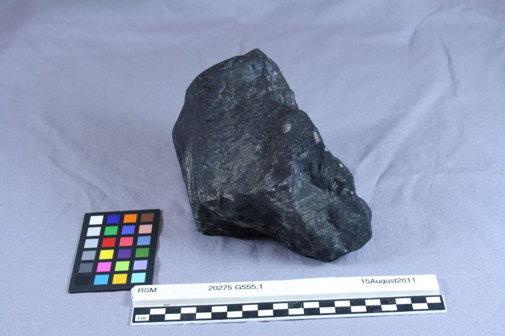 The RSM exhibit was made possible through the generous donation of meteorites by brothers Alex and Ian Mitchell. The pieces were found on their farms near Lloydminster, Saskatchewan. The celestial object was named the Buzzard Coulee meteorite after the location where most of the debris was found.