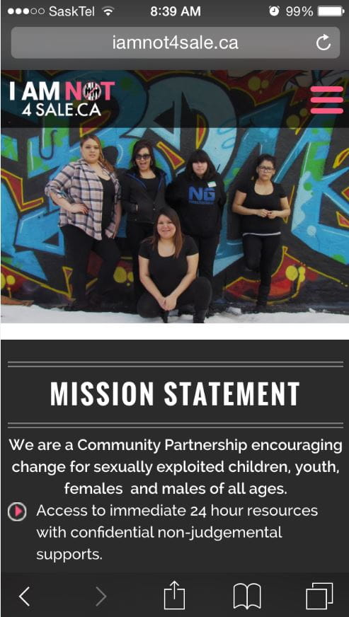 Today, EGADZ (Saskatoon Downtown Youth Centre) unveiled its Cyber Outreach initiative “I Am Not for Sale”, as a means of addressing violence and abuse against women and youth. A new website, www.IAmNot4Sale.ca, and app were developed by youth to help vulnerable individuals who are sexually exploited and trafficked through social media.