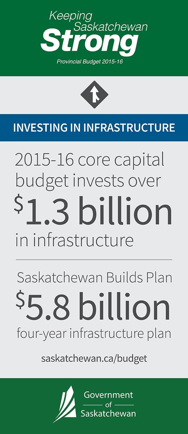 “Investments in infrastructure will keep Saskatchewan strong,” Krawetz said. “The commitments we are making this year and over the next few years are substantial and important for our continued growth.”
