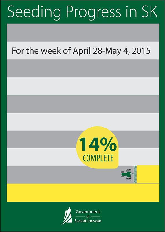 Fourteen per cent of the 2015 crop is in the ground, according to the Saskatchewan Agriculture Crop Report. The five year (2010-2014) average for this time of year is two per cent seeded.
