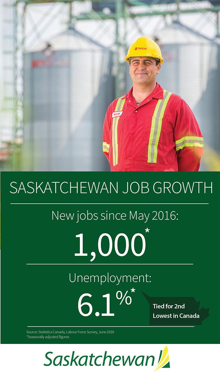 “Saskatchewan’s labour market continues to feel the impact caused by low resource prices,” Immigration, Jobs, Skills and Training Minister Jeremy Harrison said. “However, we are optimistic as forecasters predict our economy will begin to recover in the coming year, and seeing month over month gains in employment shows our economy is on the right track.”