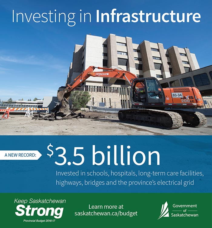 More than $3.5 billion is being invested in infrastructure projects through the Saskatchewan Builds Capital Plan and by the province’s Crown corporations in 2016-17.