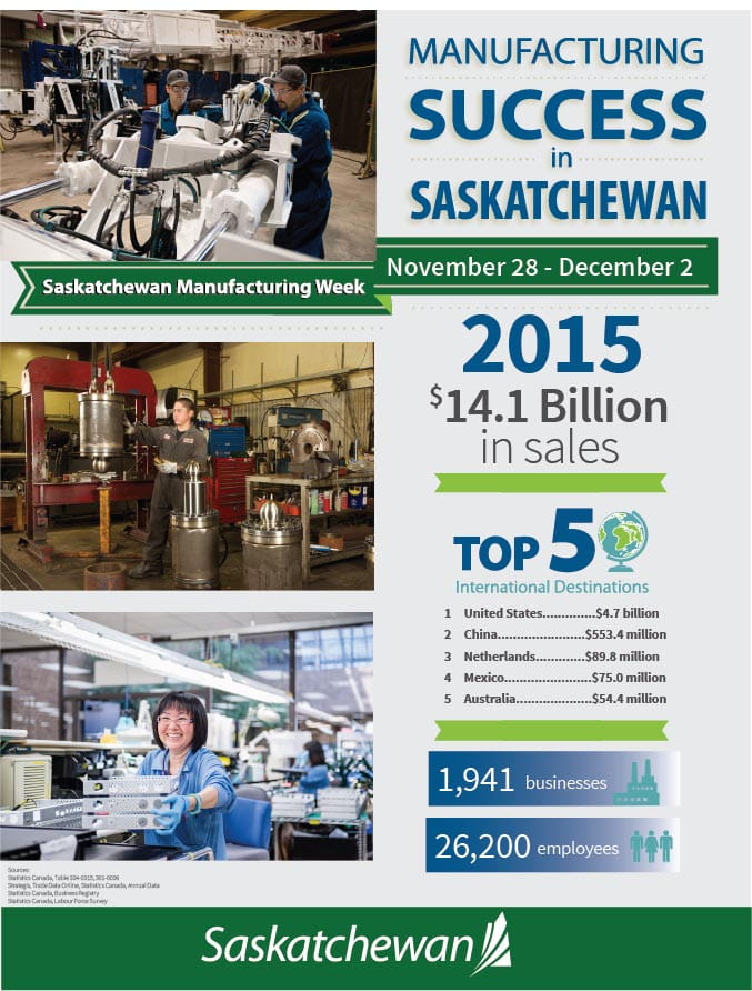 “Saskatchewan’s manufacturing sector is a major part of our diversified economy that is deserving of being recognized this week,” Economy Minister Jeremy Harrison said. “Our attractive business environment, high quality resources and innovation shown by manufacturers have helped our province’s manufacturing sector grow significantly over the past decade.”