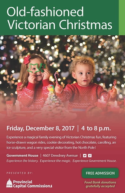 Join in the fun as the Provincial Capital Commission hosts the eighth annual Old-fashioned Victorian Christmas at Government House. The festivities take place on Friday, December 8 from 4-8 p.m. at Government House in Regina, 4607 Dewdney Avenue.