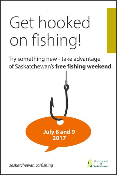 Saskatchewan’s annual summer free fishing weekend is July 8 and 9. Since 1989, one weekend is designated each summer when residents and visitors may fish in any of Saskatchewan’s public waters open to sport fishing without purchasing a fishing licence.