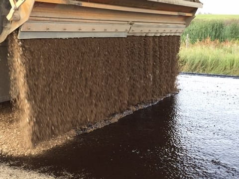 If you are driving through a 60 km/hr construction zone with fresh oil or gravel on the road, but no workers are present, you are likely passing through a seal coat project. Seal coats are a cost-effective highway treatment that provides a waterproof surface, prolonging pavement life.