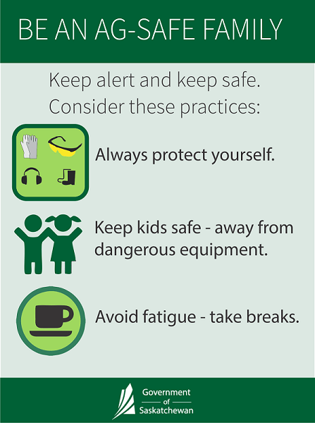 Please visit www.saskatchewan.ca/farmsafety for more information about farm safety and for access to the Farm Safety Guide.