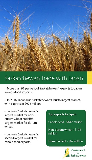 Japan is Saskatchewan’s largest export market for non-durum wheat, and the province’s second largest export market for canola seed.