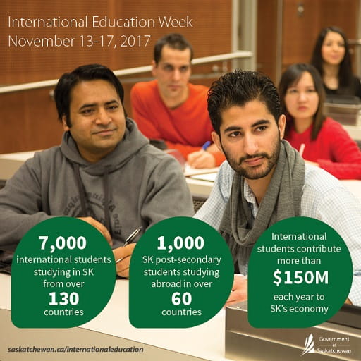 The Government of Saskatchewan is pleased to recognize International Education Week from November 13-17, 2017. International Education Week is celebrated in more than 100 countries and is dedicated to showcasing the impact that international education has on preparing students for the world.