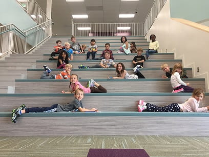 Each joint-use school contains a 90-space child care centre as well as community space. Like the other joint-use schools, École St. Elizabeth is highlighted by many incredible features such as the beautiful presentation stairs that are highly flexible and can support a variety of activities like student assemblies.