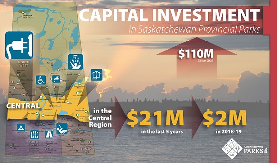 A total investment of more than $11 million for planned improvements throughout the provincial park system in 2018-19 will increase total investment in parks to nearly $110 million since 2008. Saskatchewan’s provincial parks continue to be an important destination, attracting visitors and bringing economic benefits to the entire province.