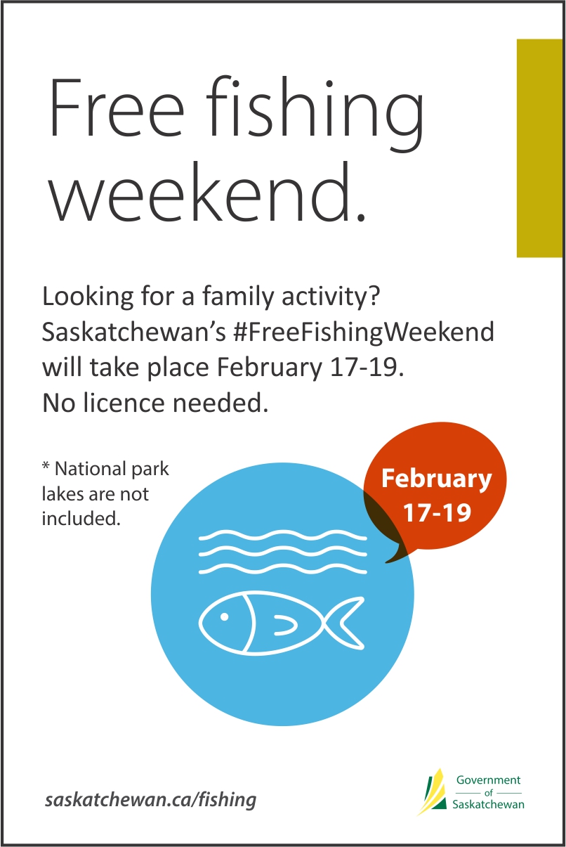 Saskatchewan’s annual winter free fishing weekend once again coincides with the province’s Family Day holiday weekend on February 17, 18 and 19.