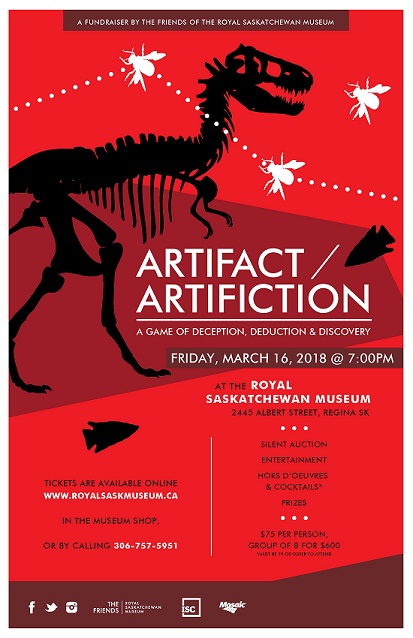 Tickets are available for $75 per person or a group of eight for $600 and can be purchased online at www.royalsaskmuseum.ca, at the Museum Gift Shop, by calling 306-757-5951 or via email to michelle.hunter@gov.sk.ca. Tax receipts are available. All proceeds from Artifact/Artifiction go to the Royal Saskatchewan Museum’s Graduate Student Scholarship.