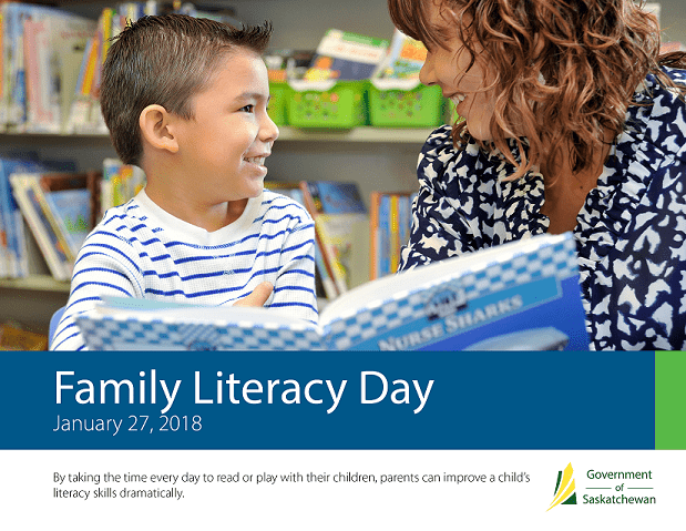 The Government of Saskatchewan has proclaimed Saturday, January 27, 2018 as Family Literacy Day in Saskatchewan.