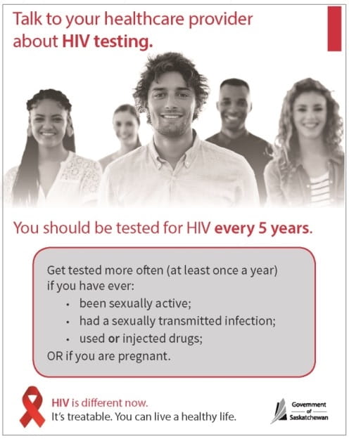 Residents can get an HIV test through a physician, nurse practitioner, local public health office or at testing clinics (some of which offer anonymous testing). Information on HIV, including testing, is available at www.saskatchewan.ca/hiv or www.skhiv.ca. You can also call HealthLine 811, a 24-hour service for all residents.