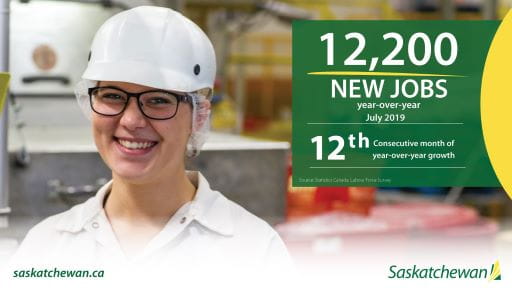 According to a report issued today by Statistics Canada, employment in Saskatchewan rose by 12,200 jobs in July, compared to July 2018. The 2.1 per cent increase marks 12 consecutive months of year-over-year job increases.