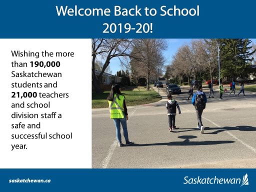 “I know firsthand how excited kids are at this time of year as they head back to school, or begin school for the first time” Deputy Premier and Education Minister Gordon Wyant said. “I know many parents and educators who are eager to begin a new school year too and it is important that we all do our part to keep our students safe as they travel to and from school.”