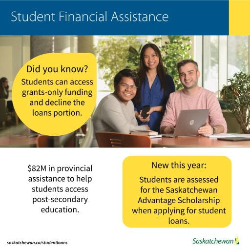 More information on Saskatchewan student loans can be found at www.saskatchewan.ca/studentloans or by calling 1-800-597-8278.