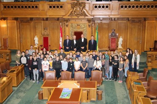 Today, as part of the semi-annual program, A Day in the Legislative Assembly more than 50 Grade 8 students from Allan and Langham, their teachers and chaperones visited the Legislative Building.