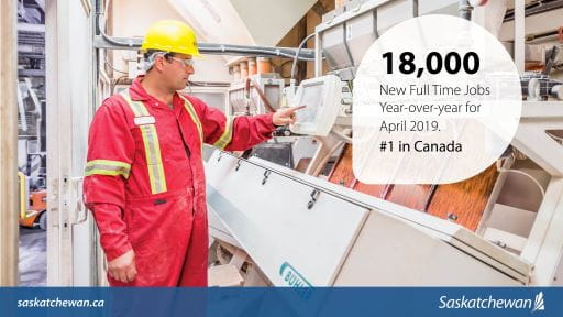 Saskatchewan’s year-over-year employment increased by 14,200 jobs from April 2018, marking the ninth consecutive month of strong job gains for the province.