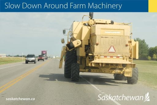 With spring seeding underway, please be aware of slow moving farm machinery, as well as other large equipment, when travelling on Saskatchewan’s highways.