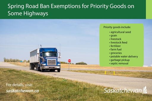 To help lessen the impacts of many challenges in the provincial agriculture sector, the Government of Saskatchewan and Saskatchewan Association of Rural Municipalities (SARM) are working together to lift spring road bans for priority goods.