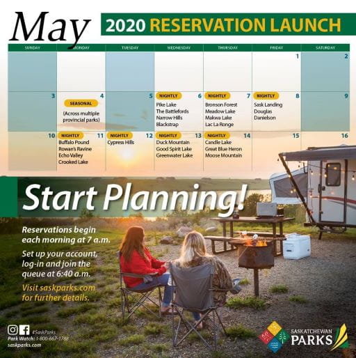 The Saskatchewan Provincial Parks Campsite Reservation Launch is set to begin May 4, 2020, with a camping start date of June 1, 2020.