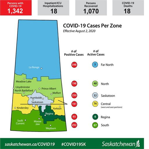 There are eight new cases of COVID-19 to report in Saskatchewan on August 2, bringing the total to 1,342 cases.