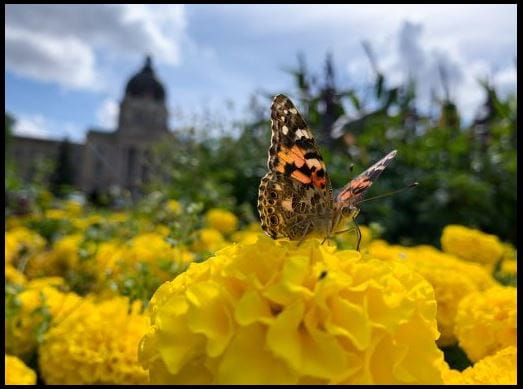 The bees and butterflies may be found buzzing in the newly installed ground cover Bee Turf. The turf is a lawn replacement blended from mixed clovers and low-growing wildflowers. It is intended to replace lawn in urban settings in order to reduce maintenance costs and increase habitat and forage for pollinators. Other popular locations for observation include the Queen Elizabeth II Gardens and Arboretum Park located along 23 Avenue just east of Wascana Rehabilitation Centre.