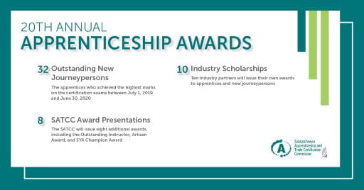 The Saskatchewan Apprenticeship and Trade Certification Commission (SATCC) is pleased to recognize the winners of the 20th annual Apprenticeship Awards.