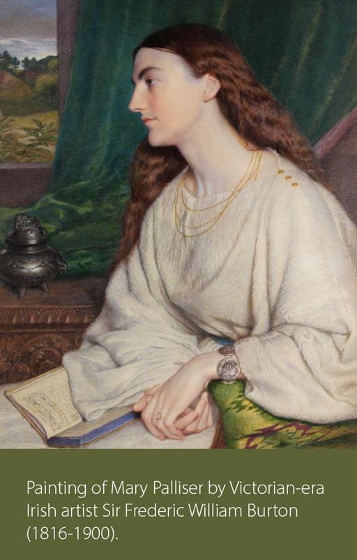 The Palliser family has its roots in Comeragh, Ireland and Mary Palliser is buried in Comeragh Cemetery in Lemybrien, County Waterford. The Palliser portrait was in Dublin in 2017 for the Frederic William Burton: For the Love of Art exhibition at the National Gallery of Ireland.