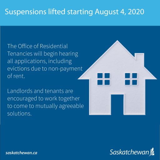 “When the pandemic began, we wanted to ensure tenants facing hardship as a result of COVID-19 were able to take the necessary social-distancing measures,” Justice Minister and Attorney General Don Morgan said. “With the success of flattening the curve in Saskatchewan, we believe it’s appropriate to lift the moratorium on non-urgent evictions.”
