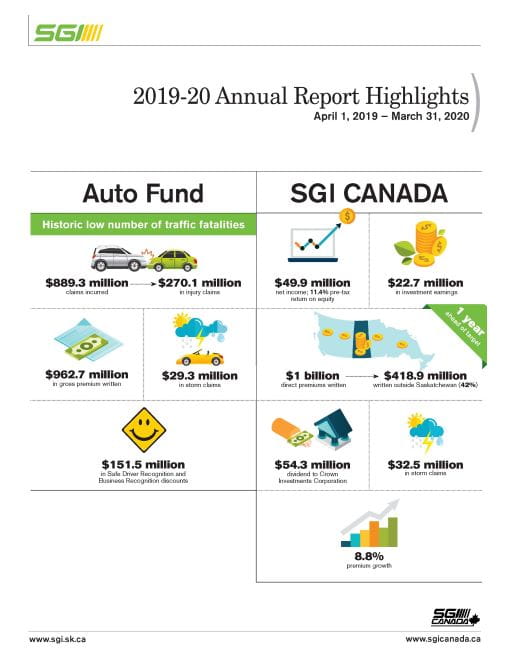 Highlights for SGI CANADA in 2019-2020 include: