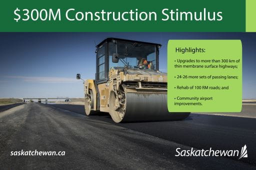 “Infrastructure investments are important for growth, quality of life, and safe transportation,” Highways and Infrastructure Minister Greg Ottenbreit said. “This stimulus package will provide an economic boost creating jobs and building priority infrastructure projects which will serve the citizens of the province for decades to come.”